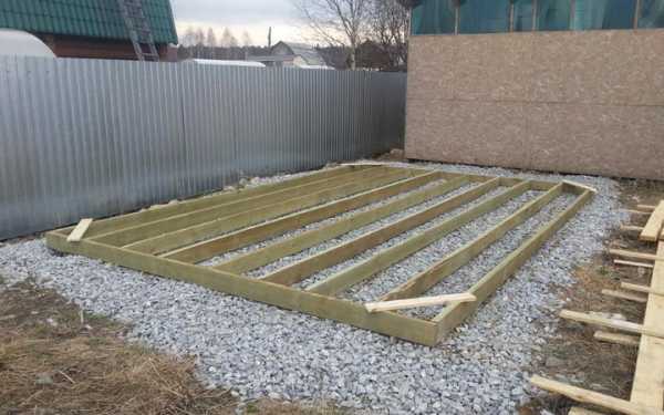 Перед тем как капитально сколачивать лаги пола между собой, необходимо убедиться в том, что диагонали данного основания равны между собой. Также надо проверить расположение каркасного домика относительно соседнего забора и стен каркасного сарая. Немаловажно проверить горизонтальный уровень половых лаг, которые находятся на щебне, и если нужно легко подсыпать его.