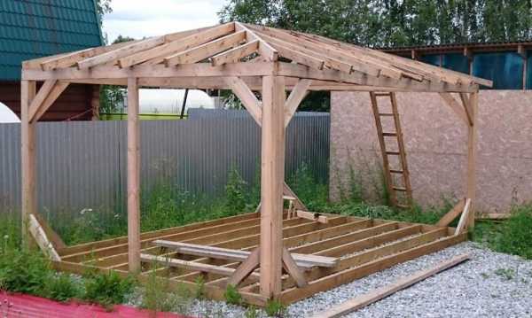 Теперь можно приступить к постройке крыши. Конструкция будет двухскатная, самая простая и быстрая в изготовлении.