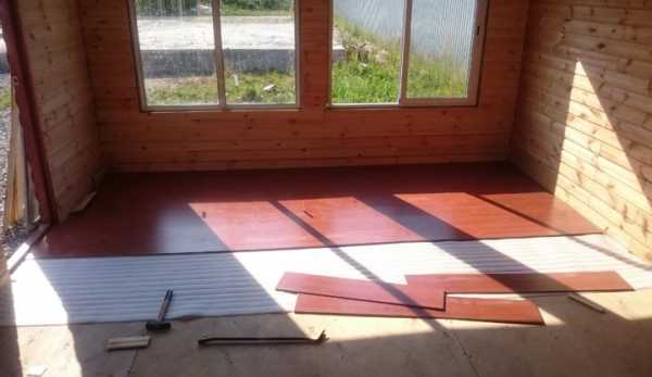 - Теперь перпендикулярно лагам укладываем чистовые доски, пропитанные олифой.