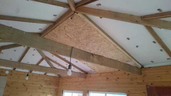 - Осталось сформировать кровельный пирог крыши, после чего накрыть её мягкой или металлической черепицей, или другим материалом. Следом за этим, утепляем крышу изнутри, а с внешней стороны, обшиваем стены влагостойкими плитами ОСБ.