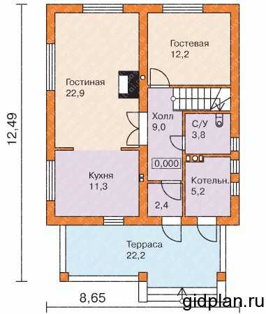 Тамбур также можно исключить из плана, ведь дом не будет эксплуатироваться в жестких климатических условиях, а значит можно не защищать жилое пространство от проникновения холодного уличного воздуха.