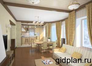 планировка гостиной, совмещенной с кухней все чаще и чаще используется в частных жилых домах