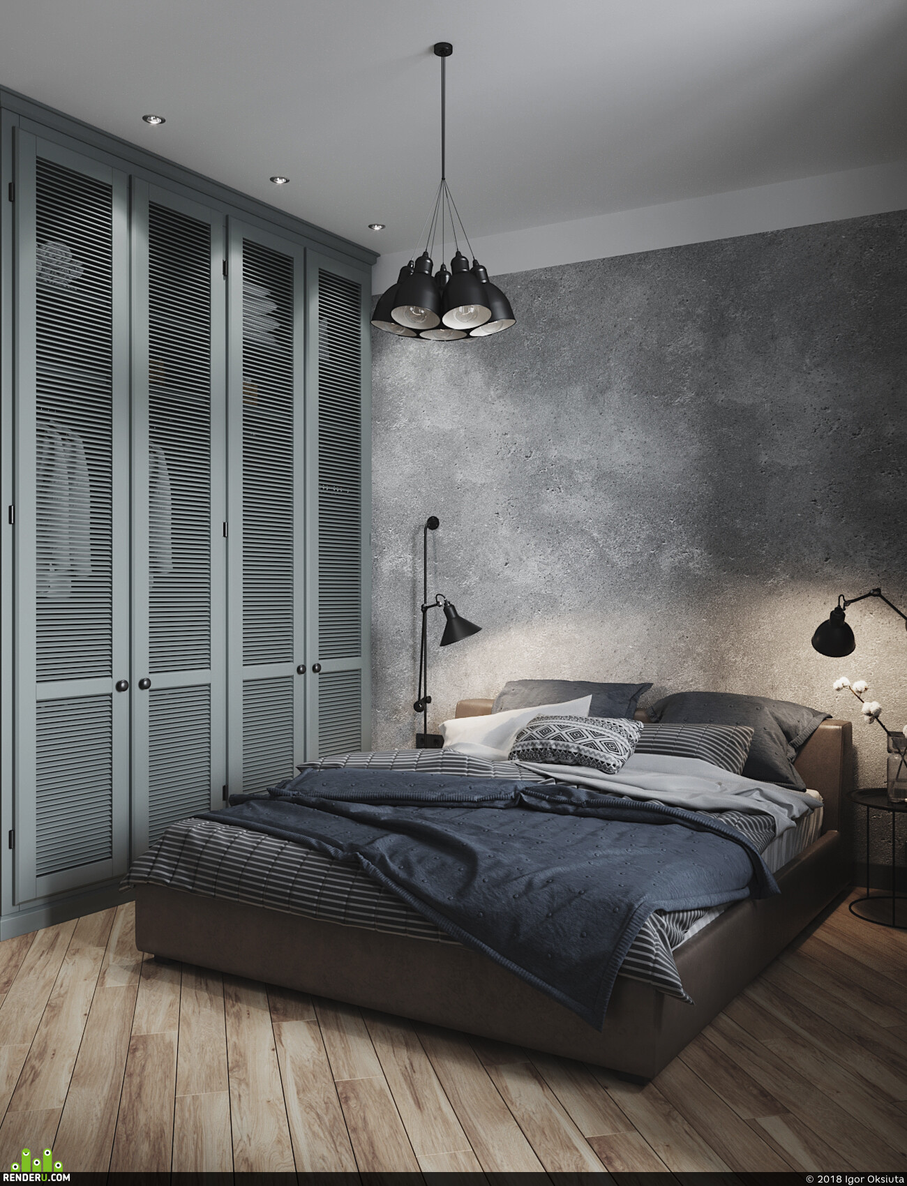 Красивый дизайн спальни лофт для холостяка?от Kia Designs