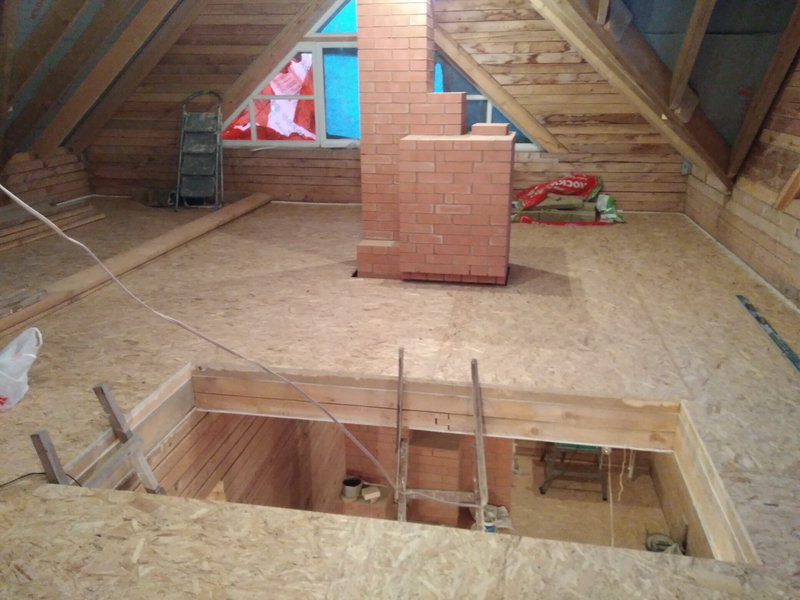 - Черновой пол из не струганной, необрезной доски крепится к черепным брускам. Толщина доски может быть небольшой (около 16 мм), поскольку нагрузки на черновые полы не высокая. Уложенные перпендикулярно балкам доски черновых полов, также следует обработать антисептиком.