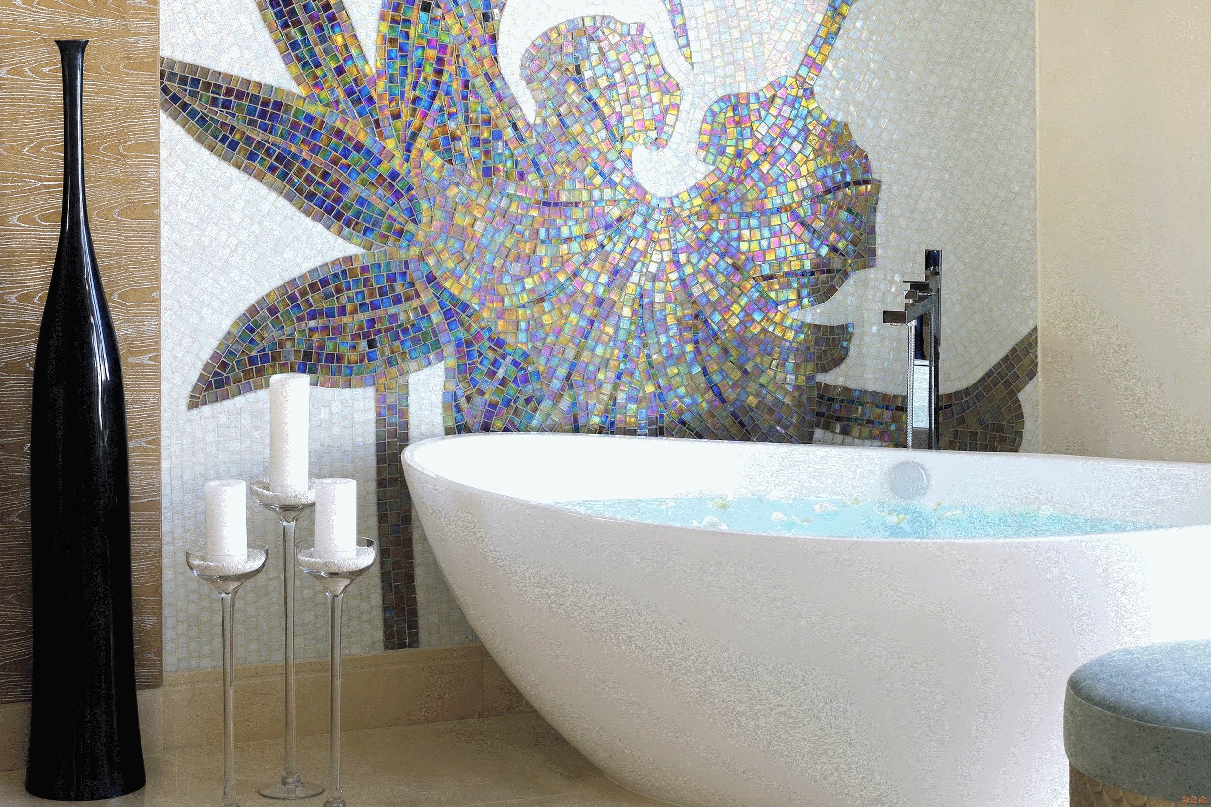 Уже не раз проверено, что благодаря использованию мозаики в ванной комнате никогда не появлялись ни плесень, ни бактерии. Перечень мозаичных достоинств скромен, но емок. Она: