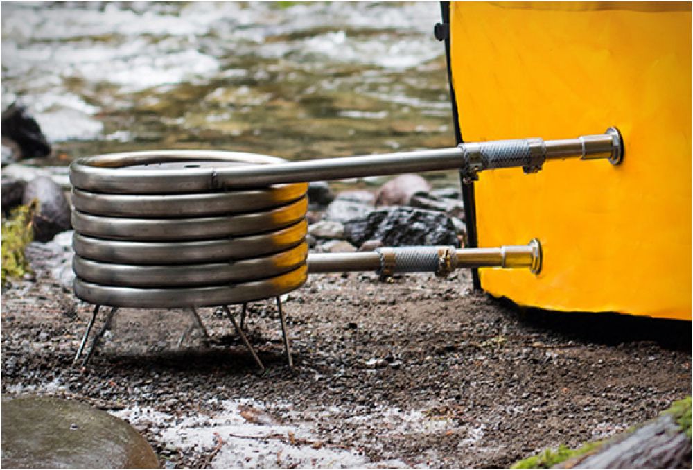 - С обеих сторон змеевика приделайте металлические отрезки трубы, выходящие за пределы бака.