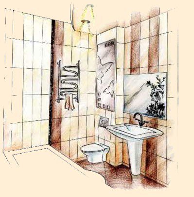 Я хочу предложить нарисовать вот такой вариант ванной комнаты: