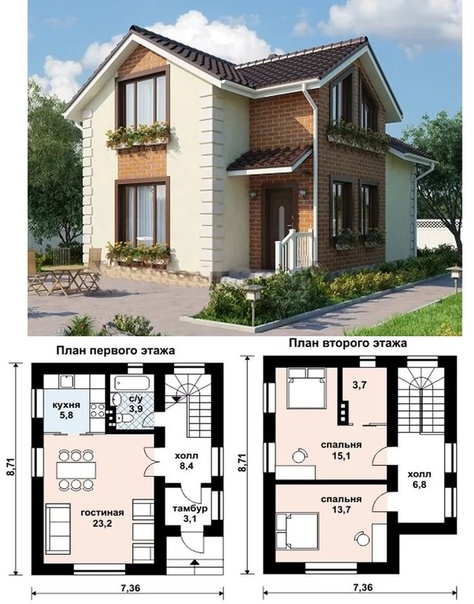 Небольшой двухэтажный дом проект: Проекты домов до 100 м² в два этажа (2 этажа)