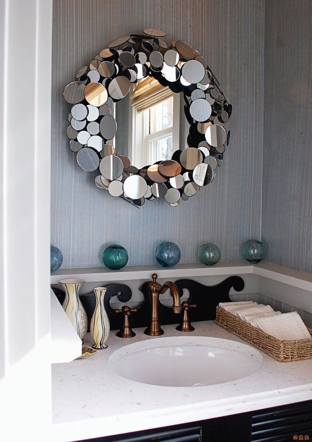 Само по себе большое зеркало в красивой или креативной раме способно не только выполнять свои основные функции, но и украшать интерьер помещения. Если же использовать несколько небольших зеркал одинаковой формы, но в разных рамах (чаще всего исполненных в едином стилистическом решении), то можно получит целую декоративную композицию.