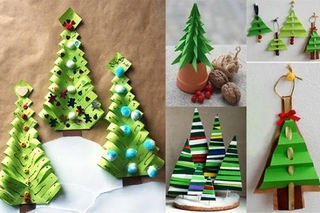 Существует масса вариантов поделок из бумаги, которые можно смастерить на новый год. Самый простой вариант – картонная новогодняя елка. Вырежьте из зеленого картона круг, сверните его конусом, закрепите с помощью супер-клея. В качестве украшения используйте вырезанные из цветной блестящей бумаги звездочки и шары. На верхушку «наденьте» звезду, которую можно вырезать из плотного красного картона.