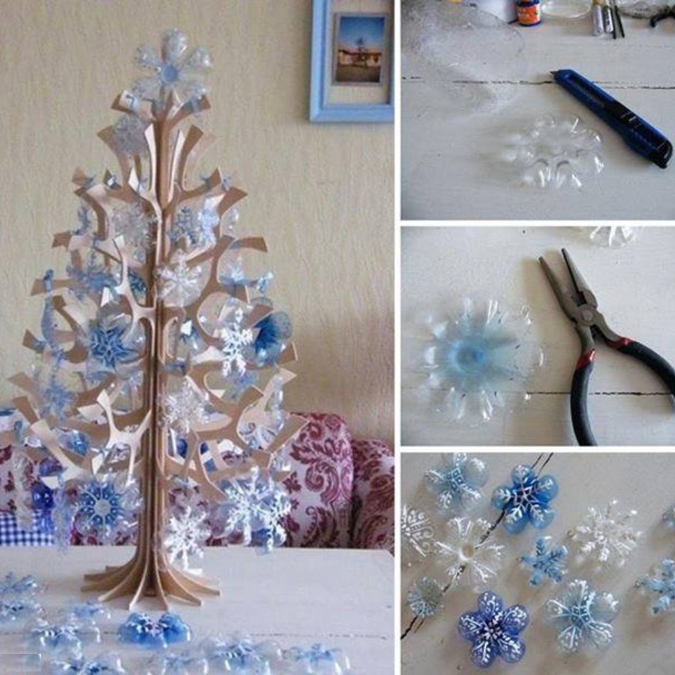 Новогодние украшения из переработанных пластиковых бутылок