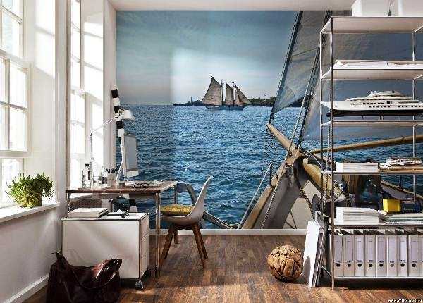 - Не стоит отдавать предпочтение фотообоям с изображением во всю стену: здесь не место рекламным баннерам.