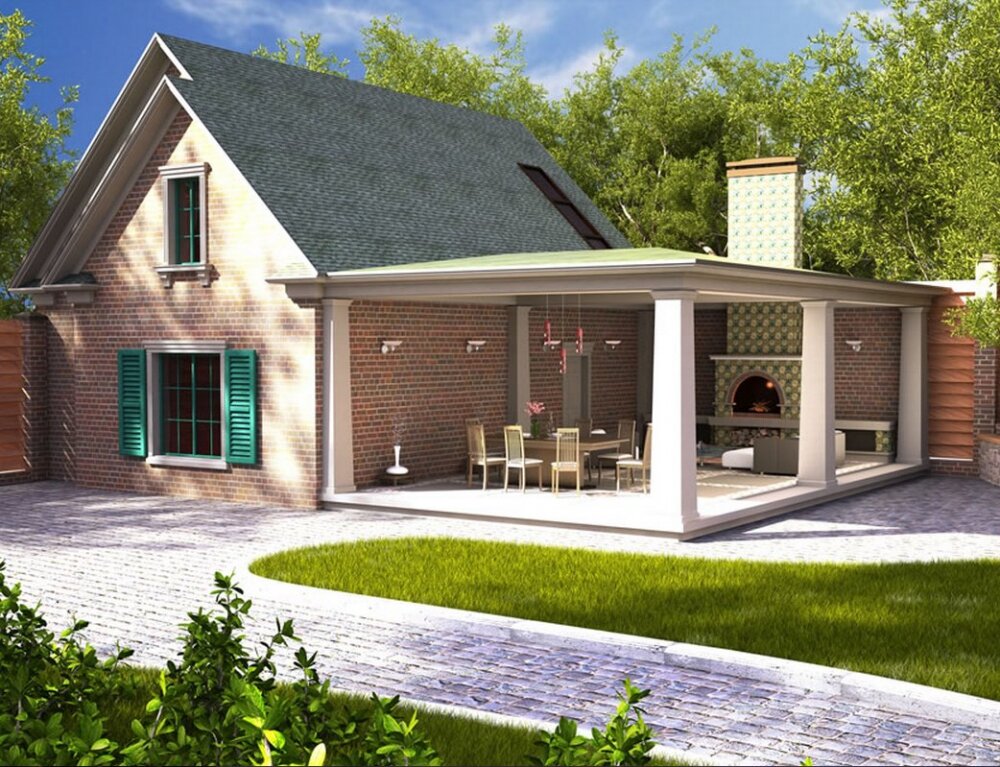 На небольших участках можно без беседки и сэкономить финансы на ее строительстве. Открытая площадка поднимает статус жилья. Она выглядит стильно, чем традиционные веранды.