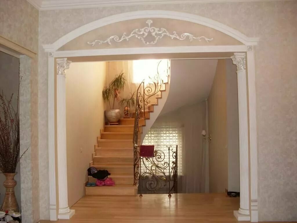 Лепнина является традиционной спутницей классического стиля. В наши дни речь идет не о ручной работе, а о вполне доступных имитациях, разнообразных молдингах из полиуретана и аналогов. Это простой и доступный вариант декора арки, однако важно выбирать только качественные образцы, чтобы зрительно не «удешевить» интерьер и учитывать, что лепной декор должен быть умеренным и подходит не ко всякому стилю интерьера.