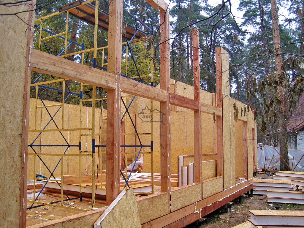 Принцип возведения основывается на каркасе, к которому крепятся специальные листы – структурно-изолированные панели. Они конструируются комбинированным образом из разных материалов, каждый из которых предназначен для определенной задачи.