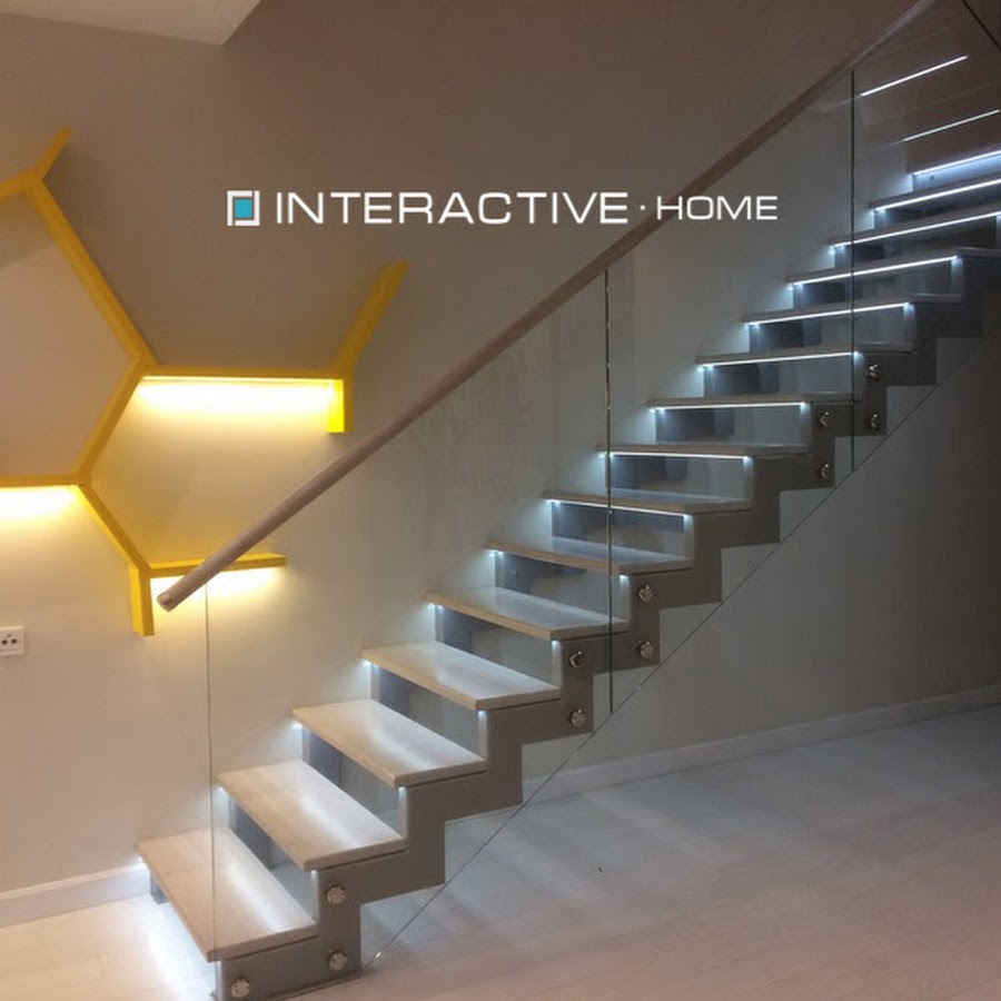 Необычная лестница со стеклянными перилами в модерновом интерьере