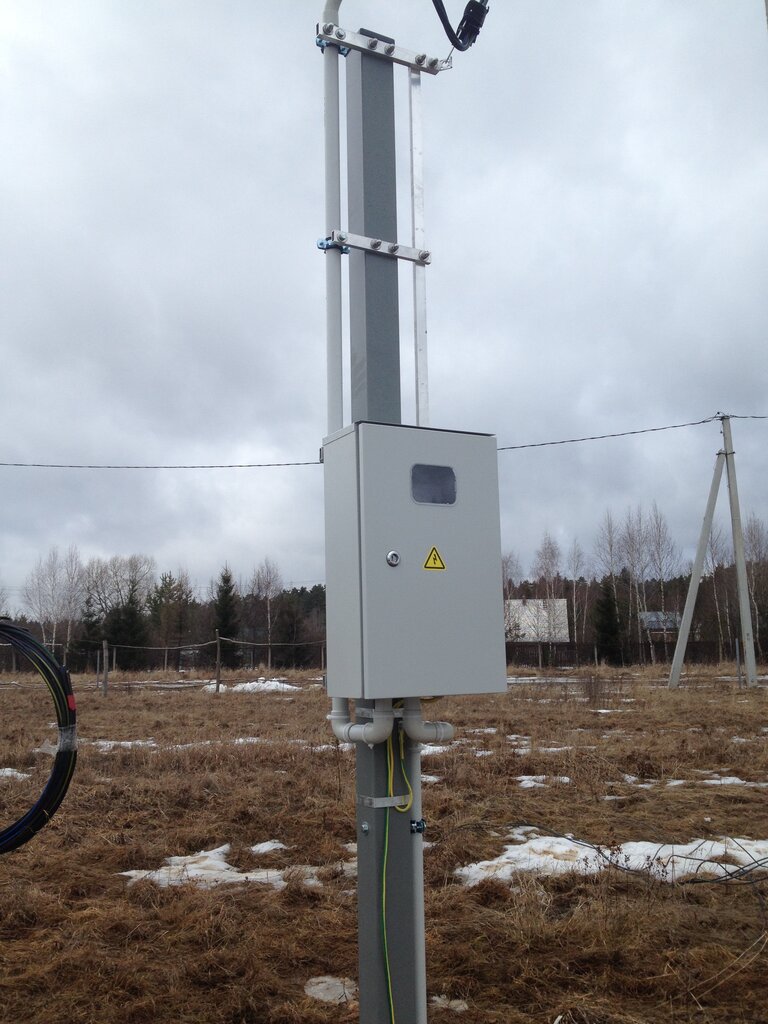 Согласно технических условий выданных до 01.07.2020 требуется установить щиток ВРУ на трубостойку с базовым заземлением практически везде в МО, на юге Подмосковья устанавливали ВРУ и на бетонные столбы.
