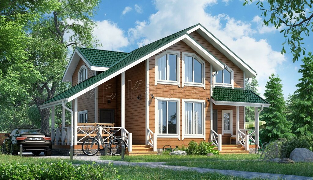 Проекты и строительство полутороэтажных каркасных домов из бруса и пеноблоков