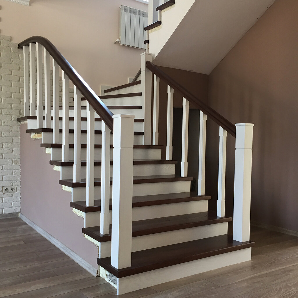 Одним из способов дизайна деревянной лестницы, заслуживающим особого внимания, выступает применение разных пород древесины, которые контрастируют между собой в цветовых решениях.