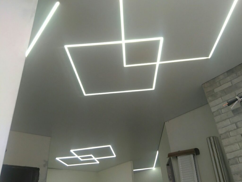 - Светодиодное освещение работает на просвет пленки натяжного потолка.