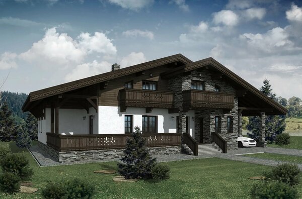 Проекты двухэтажных комбинированных домов в стиле Шале