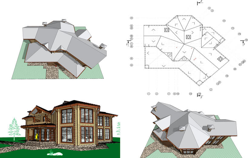 Также помощь программного обеспечения вам понадобиться при следующем этапе проектировании кровли – разработка основных схем конструкции. Этот этап проектирования состоит из нескольких шагов: