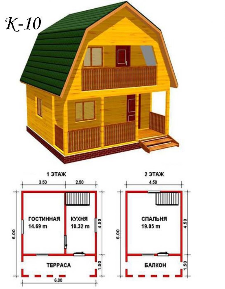 Проекты домов 6 на 6 с мансардой: Дом в полтора этажа 6 на 6. 70 м2 – цена, характеристики, комплектация