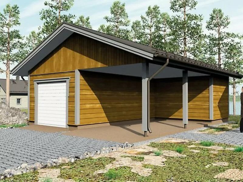 Проекты гаражей с хозблоком и навесом: Проекты гаражей с хозблоком (с хозяйственной частью): варианты построек