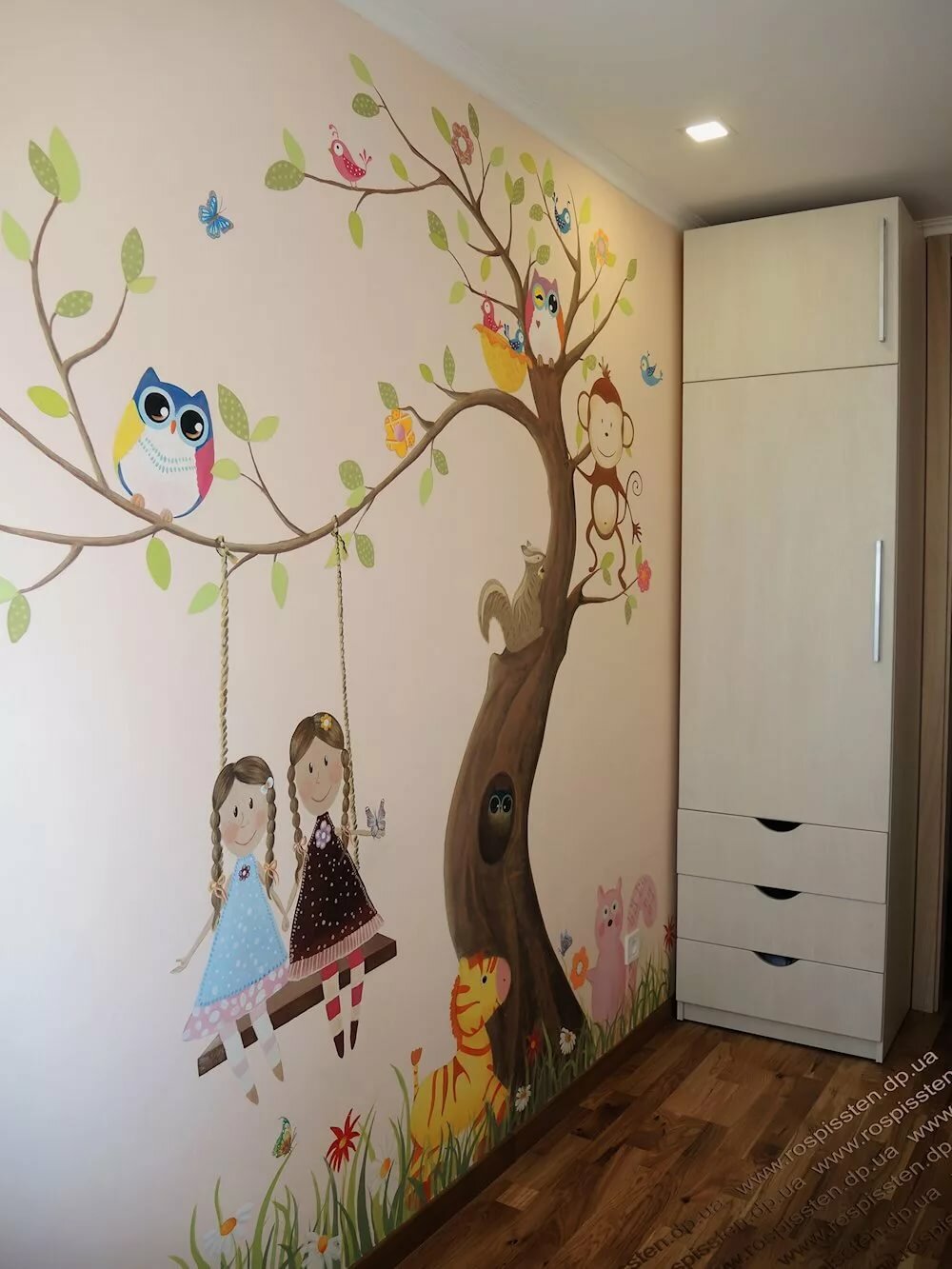 Оригинальная идея разместить роспись на двух стенах, образующих угол. Это придаст изображению немного объёма.