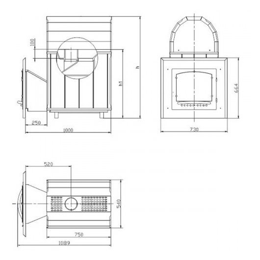 - Размеры дровяной топки — высота 15 дюймов x глубина 15 дюймов x ширина 12 дюймов