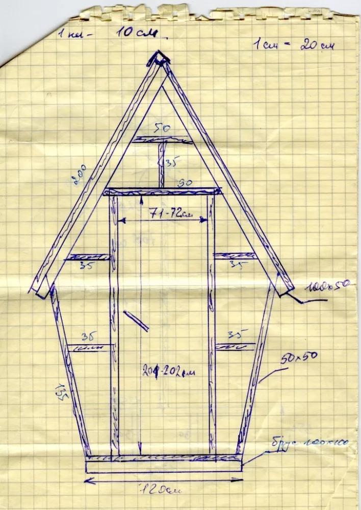 Для сооружения каркаса достаточно будет брусьев сечением 50×50 или 80×80 мм, более габаритный материал брать нецелесообразно.