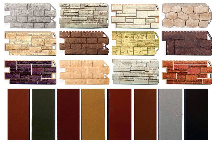 Производители выпускают сайдинг под камень разной фактуры и расцветки.
