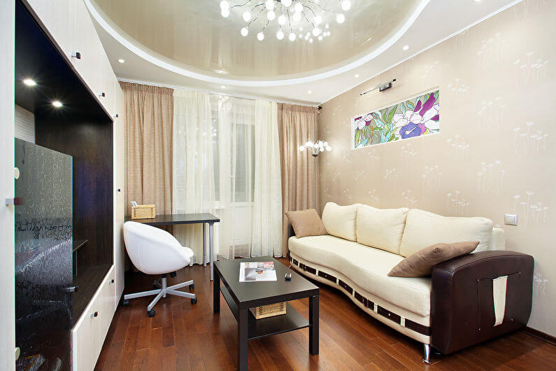 Помимо зонирования и варианта планировки, при косметическом ремонте комнаты 18 кв. м важно также определиться со стилем и цветом. Давайте рассмотрим наиболее интересные решения для гостиной.