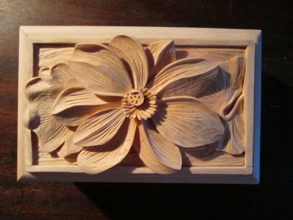 Рельефная резьба, это другая техника. Используя которую, получаются, к примеру, картины из дерева. Или, рельефной резьбой украшают мебель. Рельефная резьба это резьба, в которой, оборотная сторона изделия, остается плоской.