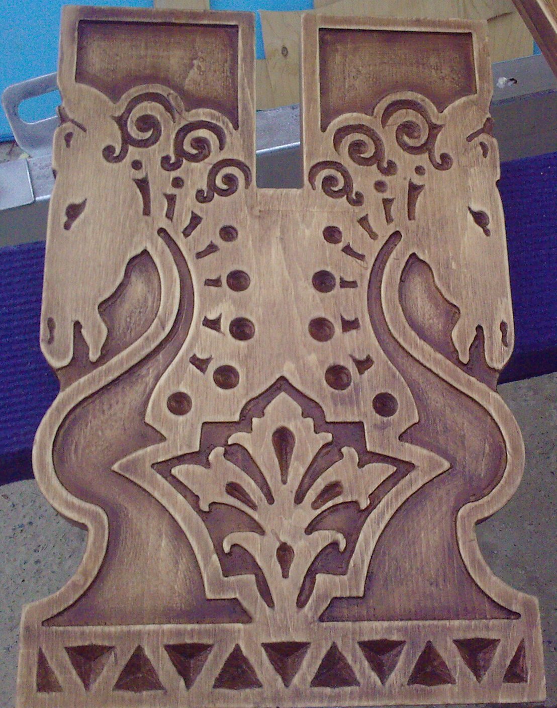 - Готовое бумажное лекало закрепляется на деревянную основу и копируются.