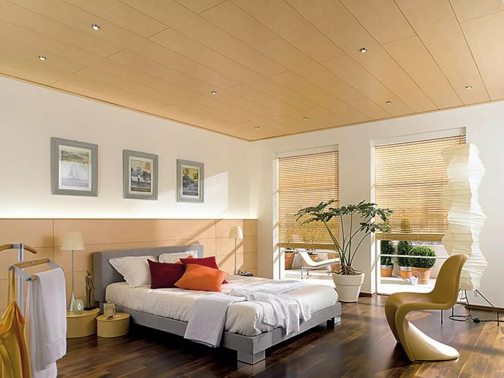 Огнестойкость. Чтобы исключить опасность возгорания потолков, материалы модулей должны относиться к классу негорючих (НГ), трудногорючих (Г1), трудновоспламеняющихся (В1). При креплении к деревянному перекрытию в межпотолочном пространстве устанавливаются металлические листы.