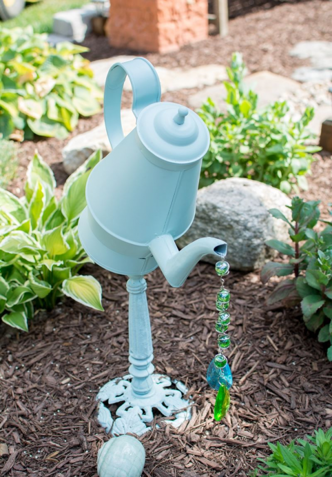 Интересные самоделки не ограничиваются предметами мебели. Территорию надо не только укомплектовать вещами, но и украсить различными декоративными штучками. К этой категории относятся не только безделушки, но и полезные изделия с эстетичным оформлением.
