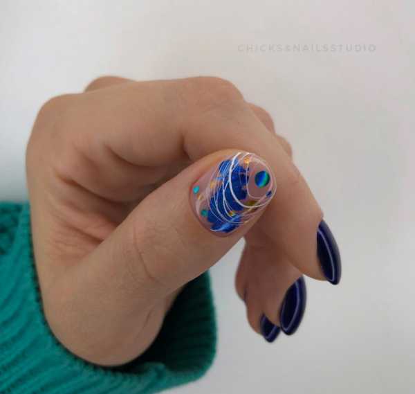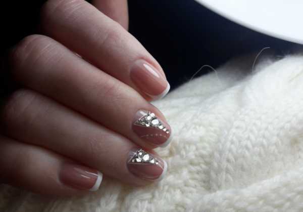 Стразы, мелкие и крупные, одиночные, выложенные узором или покрывающие весь ноготь остаются очень актуальными. Идеальный выбор для создания роскошного вечернего образа. Особенно хорошо смотрятся на фоне глубоких бордовых, черных, зеленых оттенков. При искусственном свете их переливы и игра блеска украсят ваши руки не хуже настоящих драгоценностей.