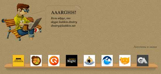 Здесь сразу становится понятно, что это сайт одного из дизайнеров в области логотипов, значков и других иллюстраций.