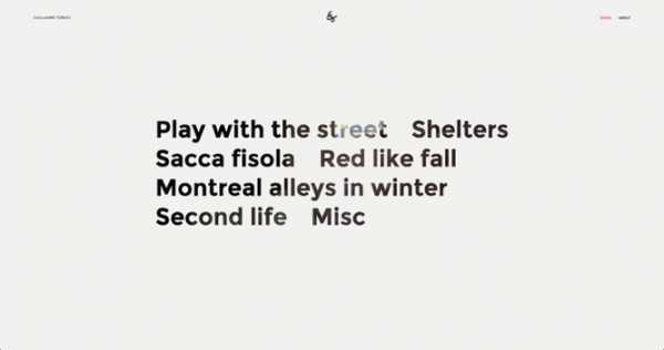Будучи фотографом в Монреале, Гийом Томази построил портфолио, которое действительно подойдет для размещения его уникальной и впечатляющей фотографии. Его сюрреалистический стиль фотографии сопоставляется с его простым, плоским, пустым и минималистичным дизайном портфолио, который фокусирует внимание на самой работе. Его уникальная серия навигации в сочетании с творческими открытиями, вдохновленными галереей, и отличными взаимодействиями с прокруткой дают опыт, напоминающий реальную галерею.