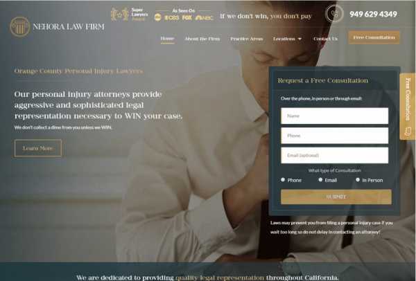 Чистый плоский дизайн с утонченными элементами придает сайту калифорнийской юридической фирмы профессиональный вид. Красиво оформлены шапка и футер. Белый цвет и оттенки золотистого на темно-бирюзовом фоне создают красивый мягкий контраст. Ориентированный на пользователя интерфейс страниц позволил упорядочить контент.