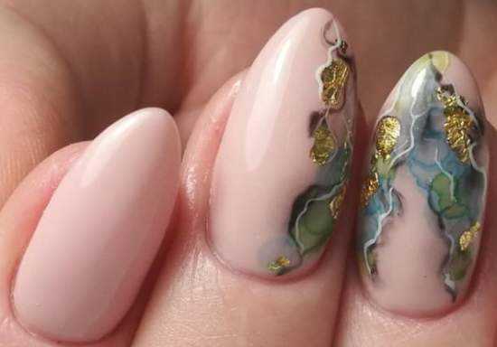 На сколько интересно и празднично может выглядеть красивый вечерний маникюр «жидкие камни» и «лепка» смотрите на фото примерах ниже.