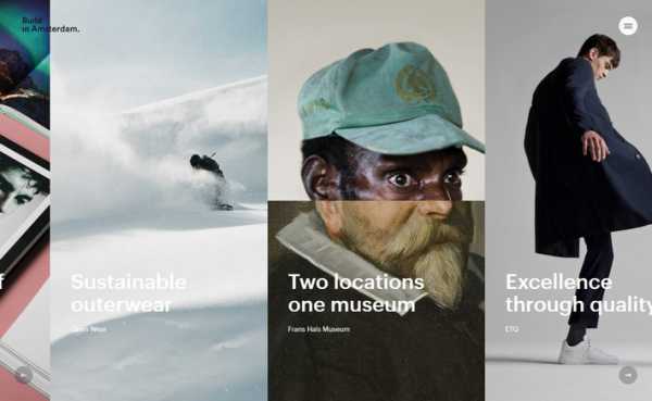 У голландского брендингового агенства красивый флэт-сайт с нестандартным меню навигации. Приятно и стильно оформлен интерфейс, хороший UX-дизайн.