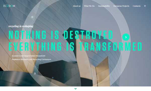 Официальный сайт итальянской компании, занимающейся оживлением бытовой техники и утилизацией. Оживленный зеленый дизайн, интерактивные и динамичные эффекты подходят веб-сайту организации с таким родом деятельности.