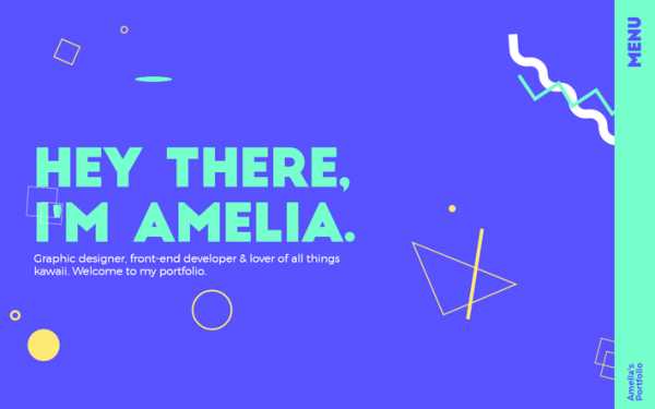Одностраничное персональное портфолио графического дизайнера и фронтенд разработчика из Чикаго. У Амелии интересное портфолио работ в плоском стиле.