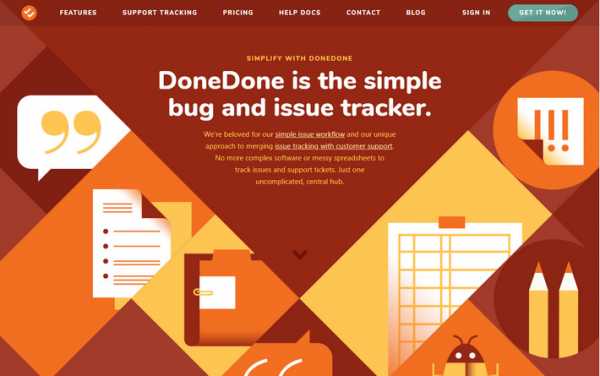 Сайт системы управления проектами с баг-трекером красиво оформлен в стиле Flat. Яркие цвета, плоскую графику / видео и контрастную кнопку с призывом невозможно не заметить.