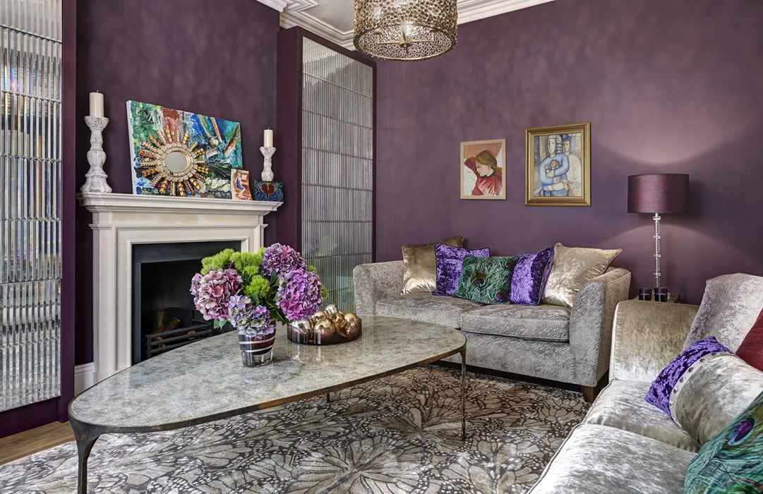 Фиолетовая или сиреневая гостиная очень дружелюбна и гостеприимна