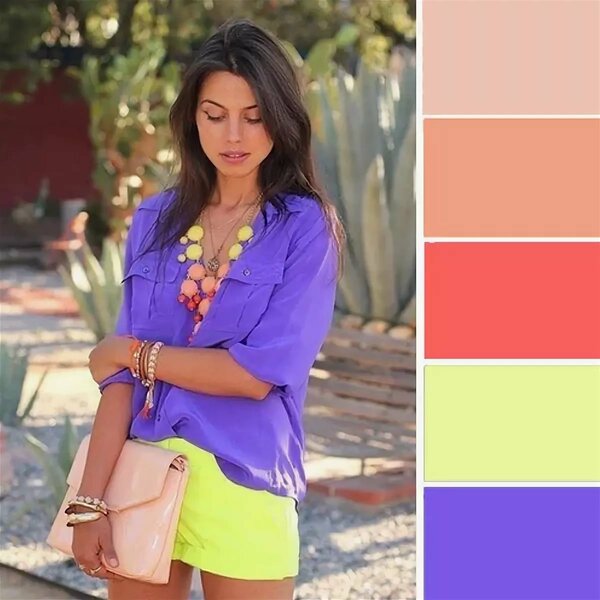 Фиолетовый и светло-красноватый лососевый апельсин хорошо сочетаются друг с другом, главным образом потому, что они вызывают два основных цвета ярких закатов.Комбинация популярна в летней моде и по этой причине в курортных или курортных поселках.