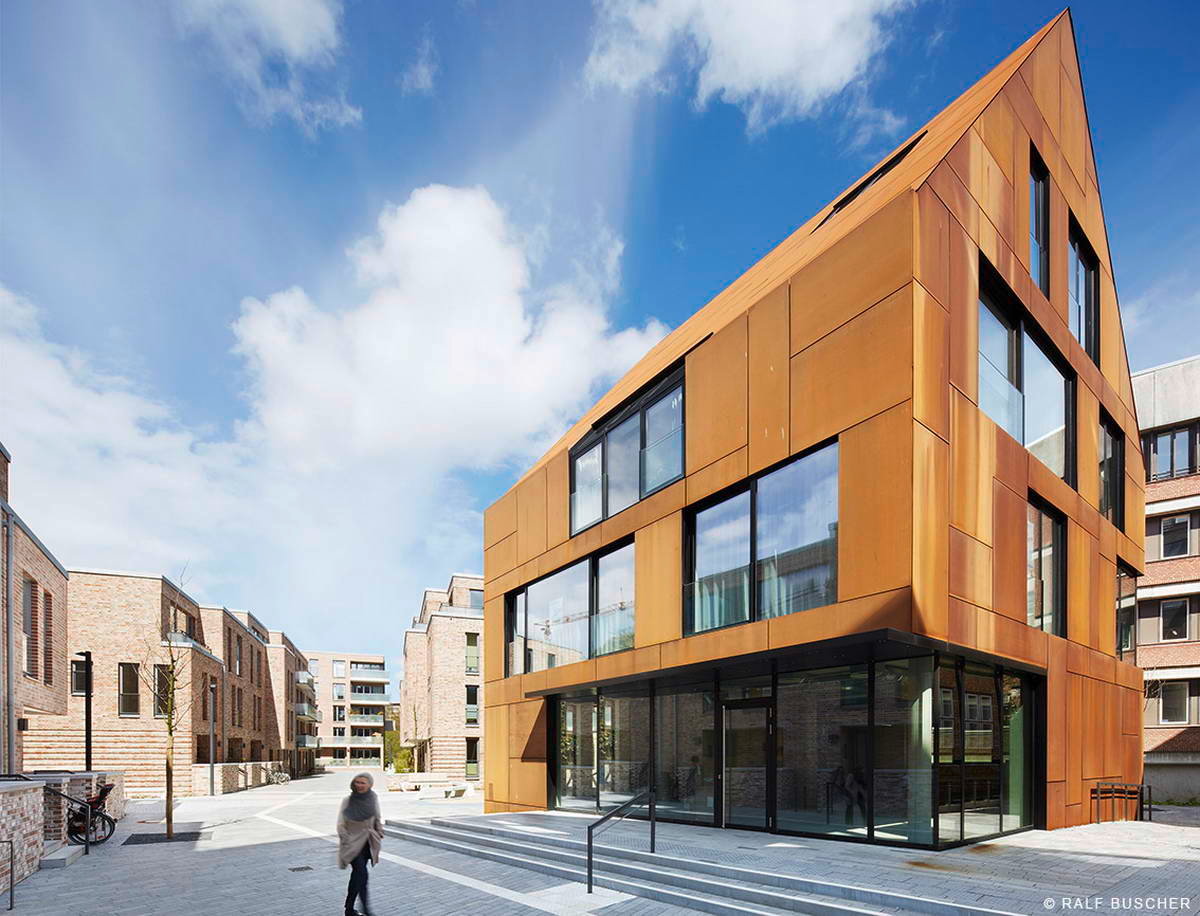 Здания имеют традиционные фасады из красного кирпича, которые реагируют на свет и тень и играют с идеями структуры и орнамента.
