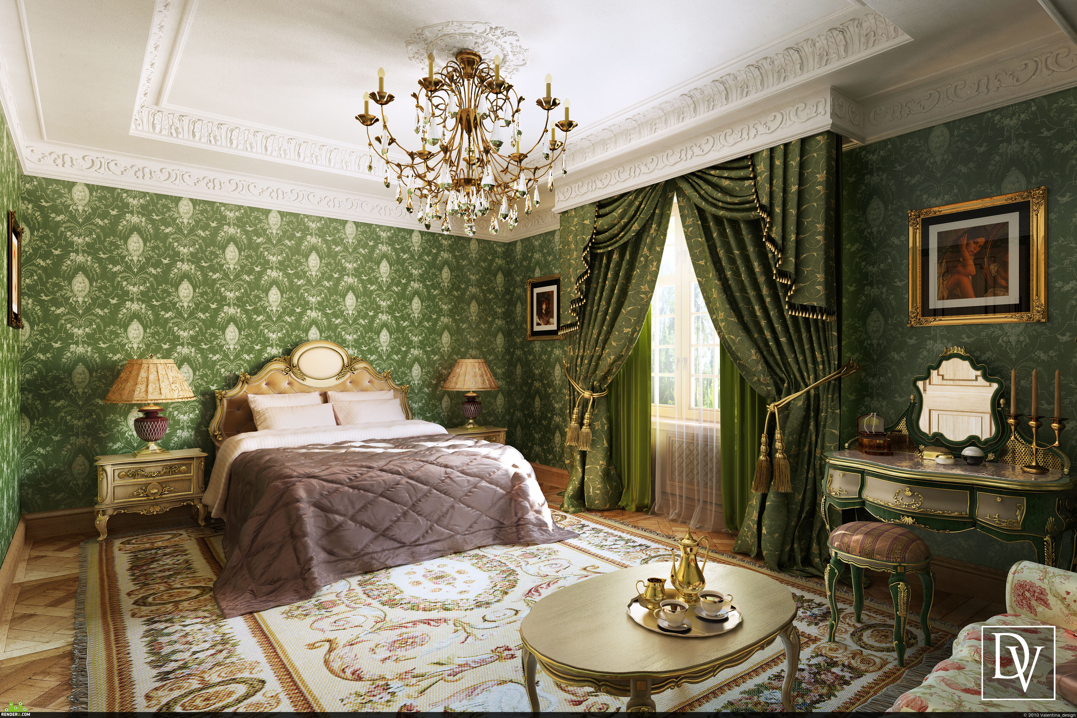 Если же спальня большая, то вполне можно создать в ней гостиную зону с креслами. Как правило, такая зона действует около окна или камина, то есть там, где удобнее и комфортнее проводить время.Рядом можно установить рабочее бюро, стеллаж с книгами или чайный столик. Особое внимание уделяется обивке мягкой мебели. Она должна быть выполнена из дорогого материала, такого как бархат, кожа или гобелен.